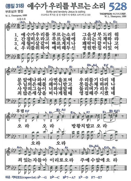 예수가 우리를 부르는 소리 그 음성 부드러워